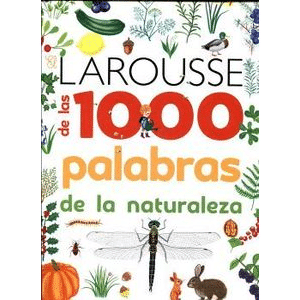El Larousse de las 1000 palabras de la naturaleza. Libro de ilustraciones para que los pequeños conozcan 1000 palabras sobre la naturaleza. Contiene 27 temas desarrollados en cuatro secciones dedicados a la naturaleza y sus paisajes, tierras lejanas, lo más sorprendente de la naturaleza y cómo cuidarla.